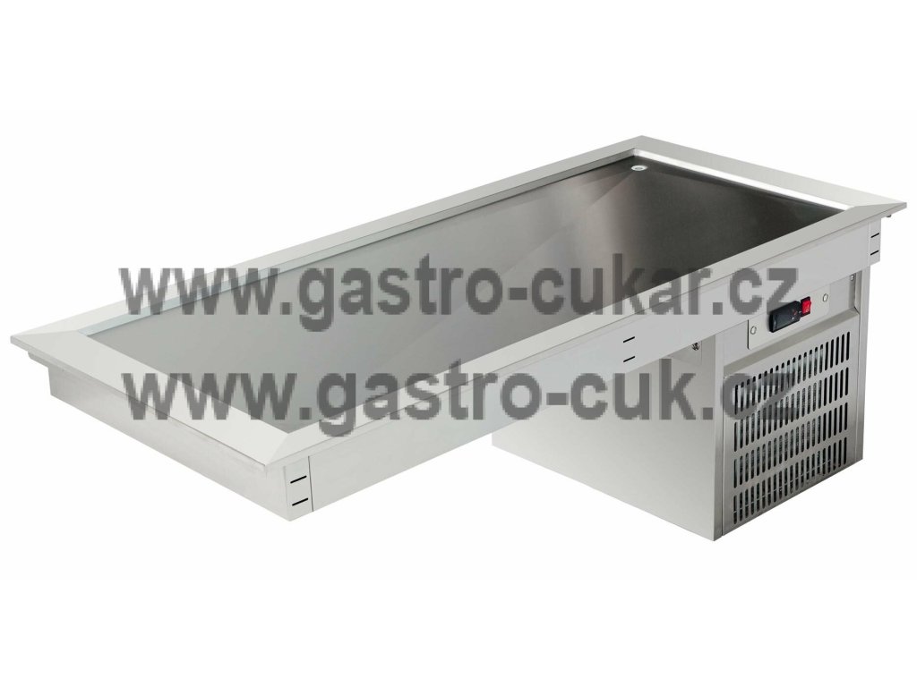 - Chlazená horní deska v rozměru vhodným pro 2 GN1/1 (hloubka vany10mm) s vestavěným chladícím agregátem.