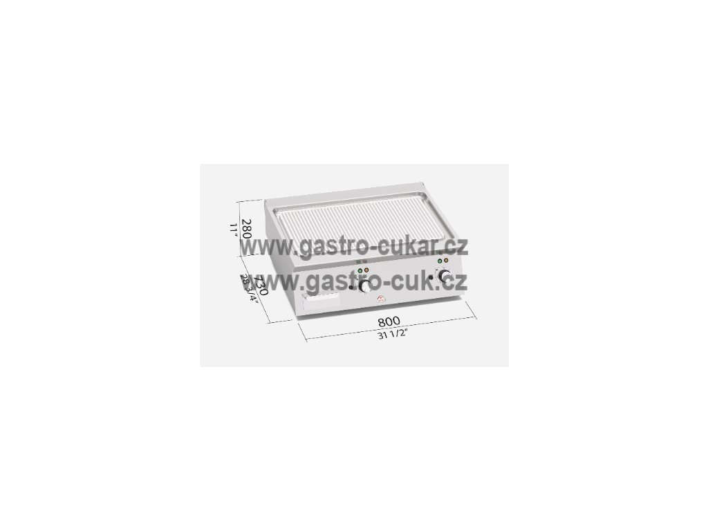 Termostatické ovládání 50 až 300°C pro přesnou a bezpečnou regulaci. Dvě zóny s nezávislým ovládáním a přesnou regulací teploty. Dvojvrstvá grilovací plotna (rýhovaná) složená z ocelového plátu a horní vrstvy z nerez oceli AISI 316 s leštěným povrchem, který umožňuje snadné čištění (odkapová plocha okolo celé grilovací desky). Zvýšené postranní lemy. Pracovní deska z kvalitní nerez oceli AISI 304 tloušťka 2 mm (20/10), přední a boční opláštění z nerezové oceli AISI 304. Dvojvrstvá grilovací plotna (umístěná v prolisované zesílené pracovní desce, tloušťka 2 mm, vybavena odtokovým otvorem) složená z ocelového plátu a horní vrstvy z nerez oceli AISI 316 s leštěným povrchem, který umožňuje snadné čištění. Nízká úroveň odlesku zvyšuje komfort při práci.