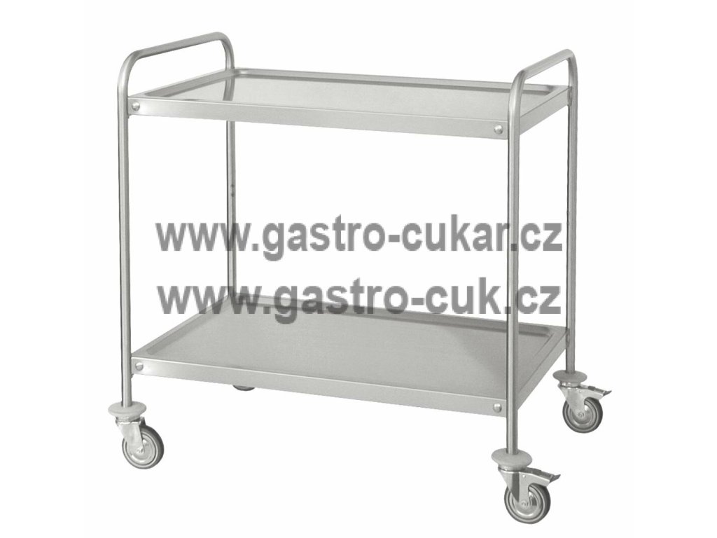 Masivní servírovací vozíky v nerezovém provedení se čtyřmi odolnými otočnými kolečky (2x bržděná). Police mají prolisované zvednuté okraje, pro lepší zabezpečení nádobí při přepravě. Vozíky jsou dodávány v rozebraném stavu, balené v kartonu včetně montážního materiálu. vozíky jsou v robustním provedení s vyztuženými a zpevněnými rohy (vozík již není třeba zpevňovat svárem).