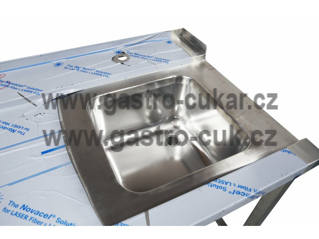 Nerezový stůl s dřezem.