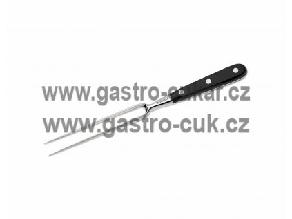 Vidlice na maso GIESSER kovaná z nerezové oceli. Velmi stabilní nástroj se zakřivenými hroty umožňuje kvalitní servírování masa. Nýtovaná plastová rukojeť zajišťuje pohodlný úchop.