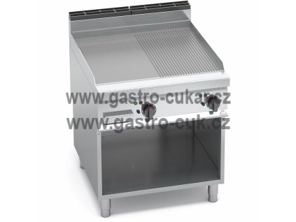 Termostatický ventil 30 až 300°C pro přesnou a bezpečnou regulaci. Termočlánek a chráněný zápalný plamínek. Deska je hladká, rýhovaná nebo kombinovaná, zvýšené postranní lemy....