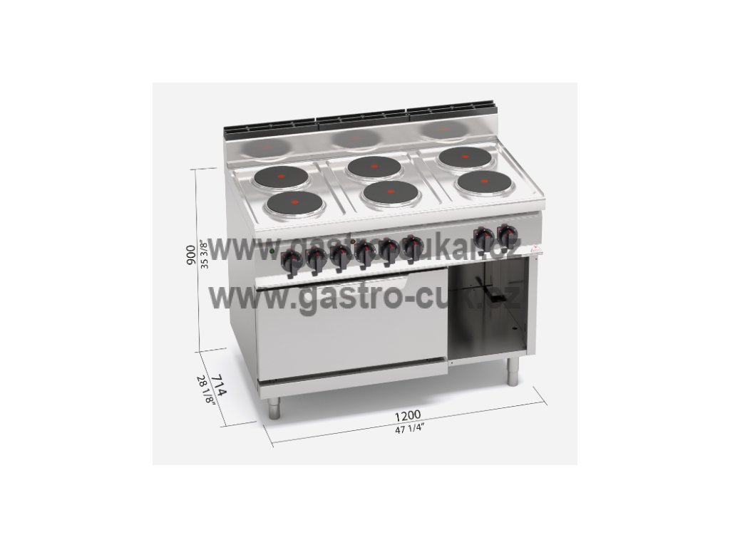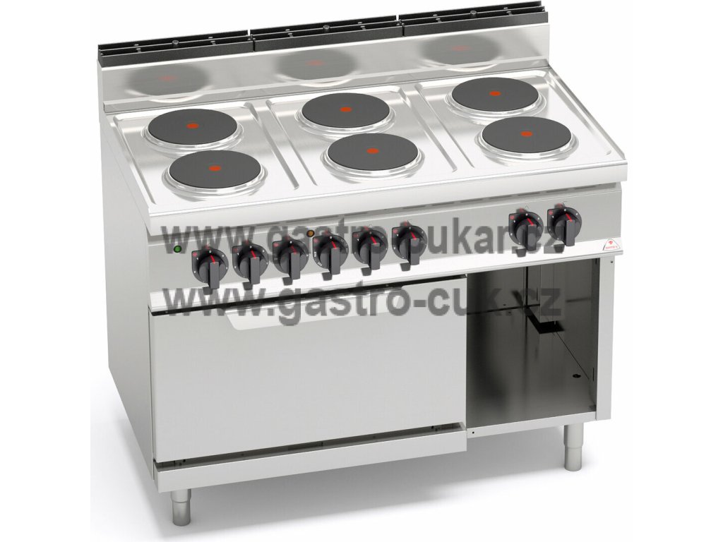 Pracovní plocha a opláštění z nerez oceli AISI 304. Litinová varné plotýnky s bezpečnostním termostatem a regulací výkonu. Kompaktní provedení s otevřeným podstavcem.