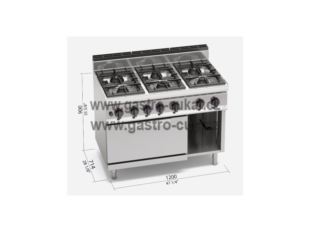 Příprava jídel přímo na plameni je u všech kuchařů nezbytná pro zdůraznění tradičních kulinářských dovedností. Tvar litinových roštů tvoří optimální pracovní plochu pro snadnou manipulaci s nádobím. Silné litinové hořáky 7 kW zaručují nadstandardní výkon a životnost. Vysoká energetická účinnost plynových hořáků umožňuje uspořit nejméně 30% plynu ročně v porovnání s tradičními hořáky. Odkapové vaničky pod hořáky mají zaoblené hrany, jsou kompletně odnímatelné. Vše je navrženo tak, aby byla snadná údržba a čištění. Pracovní plocha a opláštění z nerez oceli AISI 304. Výkonné litinové hořáky HIGH POWER, snadno demontovatelné a umístěné ve vyjímatelných prolisovaných smaltovaných (nerezových) odkapových vanách. Zapalování hořáků věčným plamínkem. Plynové trouby, pro 4x GN2/1, jsou vybaveny piezoelektrickým zapalováním a ovládány inovovanými ovladači s dvojitou konstrukcí prodlužující životnost.