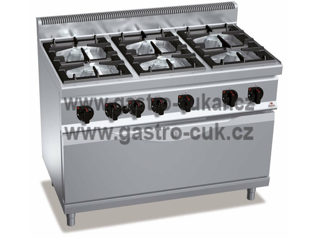 Příprava jídel přímo na plameni je u všech kuchařů nezbytná pro zdůraznění tradičních kulinářských dovedností. Tvar litinových roštů tvoří optimální pracovní plochu pro snadnou manipulaci s nádobím. Silné litinové hořáky 7 kW zaručují nadstandardní výkon a životnost. Vysoká energetická účinnost plynových hořáků umožňuje uspořit nejméně 30% plynu ročně v porovnání s tradičními hořáky. Odkapové vaničky pod hořáky mají zaoblené hrany, jsou kompletně odnímatelné. Vše je navrženo tak, aby byla snadná údržba a čištění. Pracovní plocha a opláštění z nerez oceli AISI 304. Výkonné litinové hořáky HIGH POWER, snadno demontovatelné a umístěné ve vyjímatelných prolisovaných smaltovaných (nerezových) odkapových vanách. Zapalování hořáků věčným plamínkem. Plynové trouby, pro 4 plechy 1045x530mm ,vybaveny piezoelektrickým zapalováním a ovládány inovovanými ovladači s dvojitou konstrukcí prodlužující životnost.