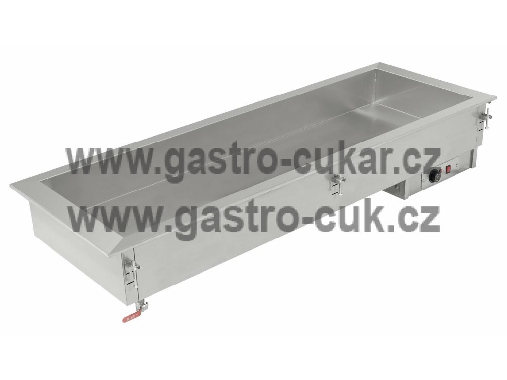 - Vestavná vodní lázeň je speciálně navržena pro uchovávání, prezentaci a distribuci teplých potravin uložených v hlubokých nerezových GN (dodávány volitelně).