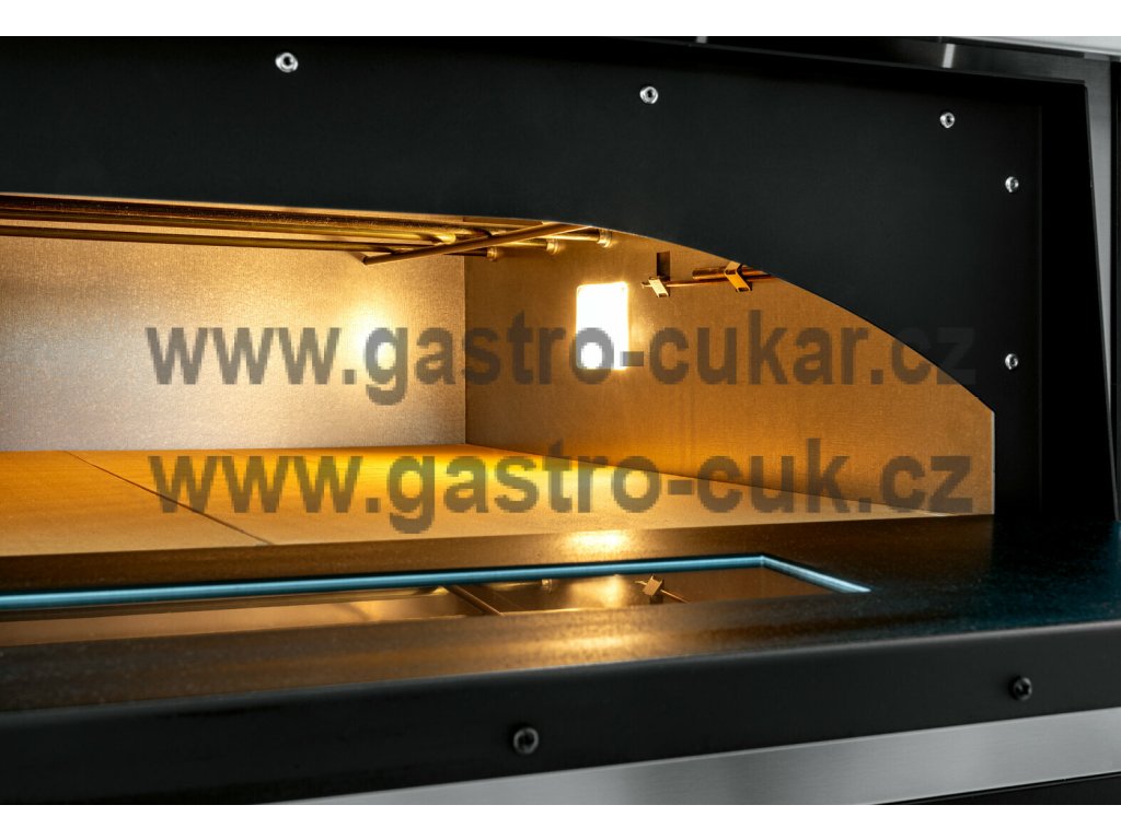 Výkonná elektrická pizza pece řady PLUS XL - jednokomorová. Snadné mechanické ovládání umožňuje individuální nastavení výkonu 3 spodních a 3 horních vysokoteplotních pancéřovaných těles (rychlý náběh teplot) v komoře. Možnost zcela vypnout spodní/horní tělesa. Komora je vybavena komínkem, analogovým teploměrem a termostatem do 500°C. Robustní pec, kvalitní izolace z minerální vlny, šamotové dno, osvětlení komory, nerezové provedení dveří a čela. Pec je navíc vybavena horním zákrytem.