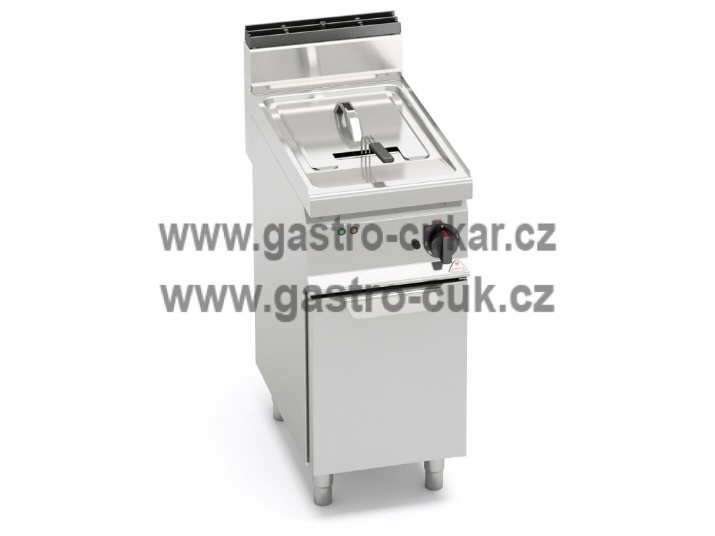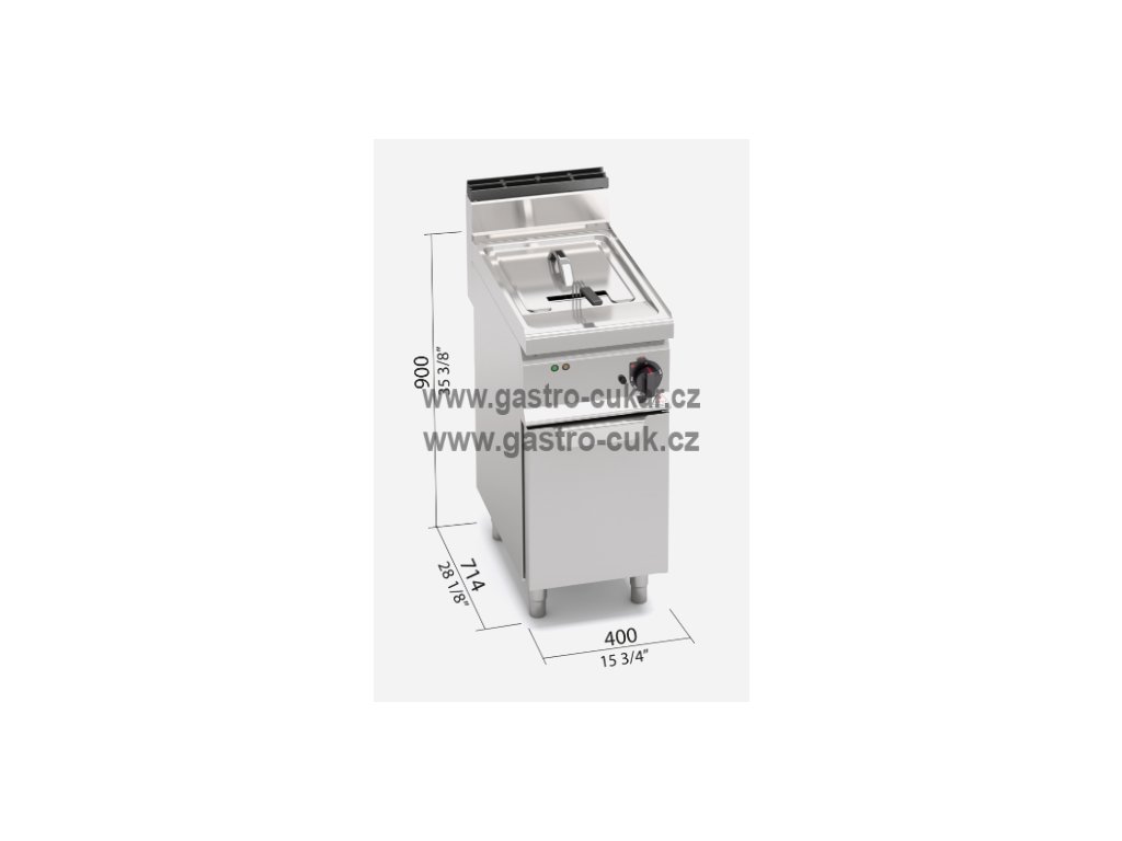 Topné těleso umístěné přímo ve vaně. Snažší čištění umožňuje odklopení topného tělesa směrem nahoru. Bezpečnostní zařízení pro přerušení napájení při odklopení spirály nahoru. Kontrola teploty termostatem od 80 °C až 190 °C s přesnějším zjišťování teploty díky senzorům umístěným ve vaně. Světelná signalizace ovládání s indikátorem teploty. Kompaktní provedení s uzavřeným podstavcem.
