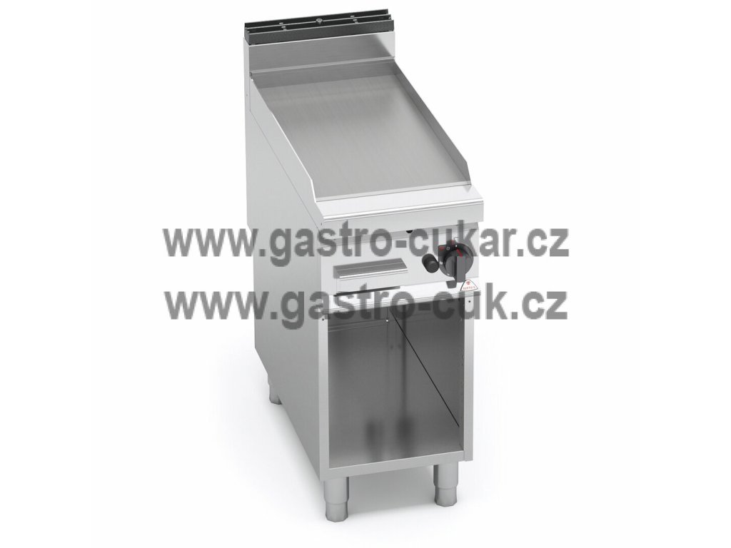 Kompletní sortiment plynových a elektrických ploten s různým provedením grilovací plochy. Lze na nich připravovat pokrmy tzv. "kontaktem" a to nejcitlivějším způsobem. Jednotný systém distribuce tepla zaručuje rovnoměrné grilování po celé pracovní ploše, velké energetické úspory a zlepšení pracovního prostředí. Při grilování se přirozeně tvoří zbytkový olej, který je odváděna shromažďován ve velké odpadní nádobce.