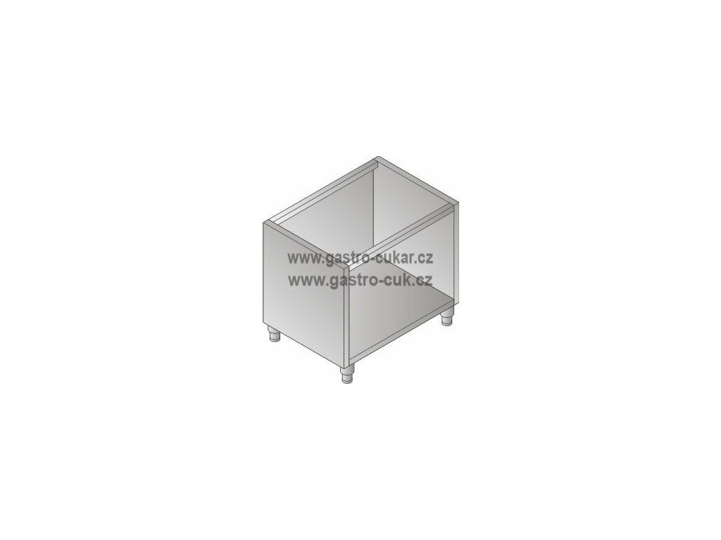 Podstavec pod varnou linku. Celonerezové skříňové provedení z čela otevřené. Možnost následného doplnění dvířky (příplatkově).